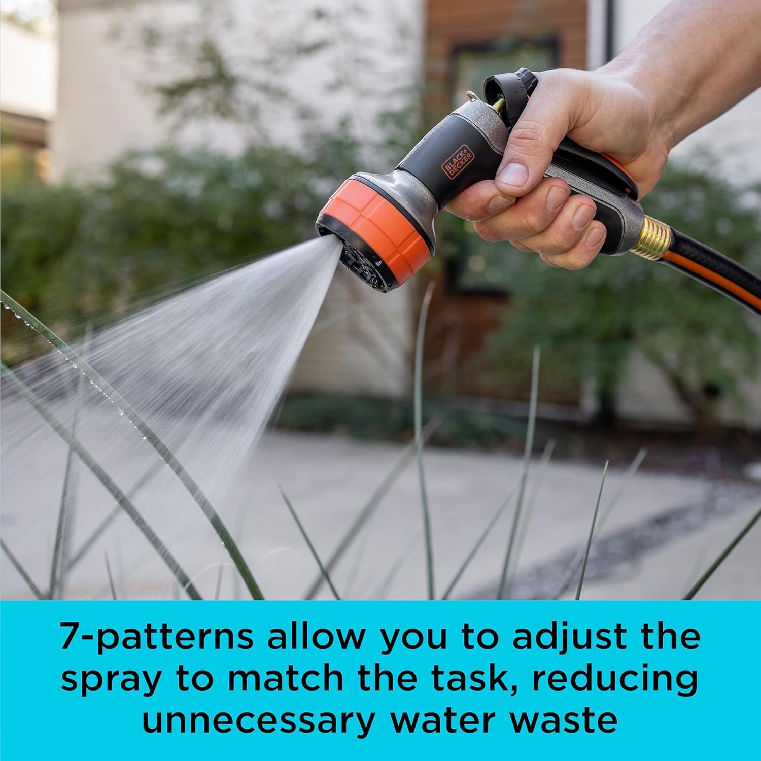 - VERSATILE SPRAY OPTIONS: Easily switch between 7 spray patterns—JET, CONE, SHOWER, MIST, SOAKER, FULL, and FLAT—for any watering or cleaning task.