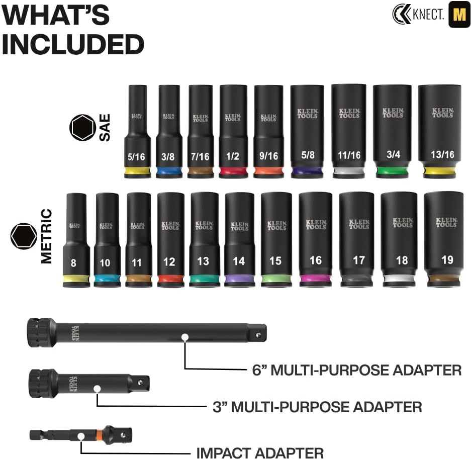 - COLOR-CODED & BOLD SIZE MARKINGS: Long-lasting, industry-standard color-coded painted rings and bold stamped size markings to quickly identify socket sizes